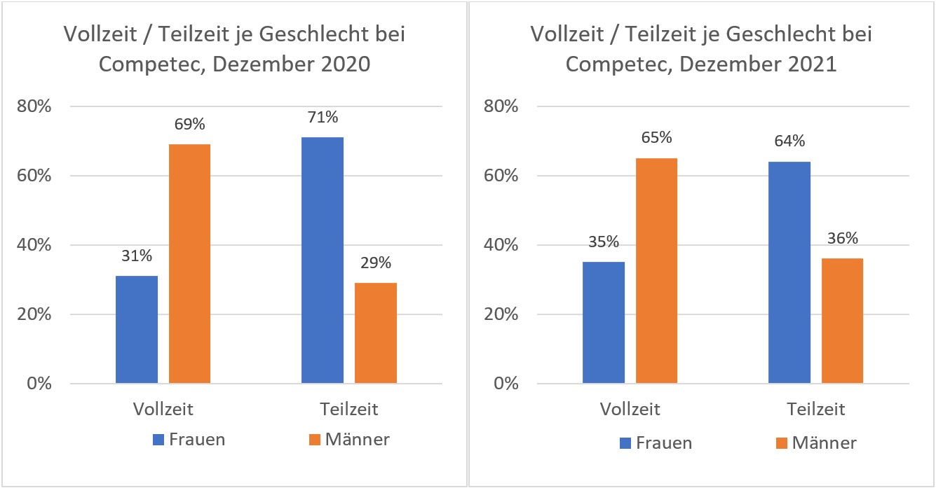 Dabei ist das keineswegs eine Sonderbehandlung für einige wenige Kolleg*innen: Rund ein Fünftel der Arbeitsplätze bei Competec sind Teilzeitstellen. Davon waren 2021 gut 64% von Frauen besetzt. Ein Jahr zuvor waren es noch 71%.