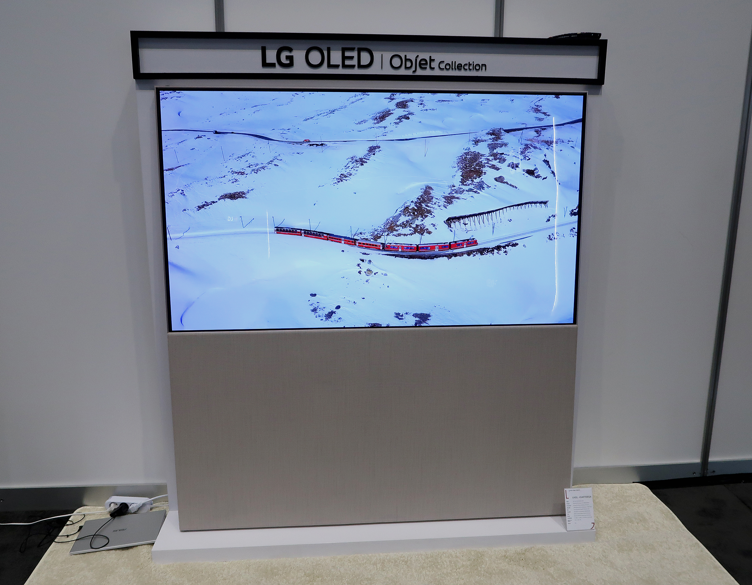 Der ART90 ist der zweite der Lifestyle-TV im Bunde. Es gibt ihn in der Grösse 65 Zoll und er wird schräg an die Wand angelehnt, wobei er oben befestigt wird. Er besitzt ein Frontpanel, auch mit Stoffbezug, das mittels Fernbedienung hochgefahren werden kann, wenn der Fernseher nicht genutzt wird. Ein kleiner Teil des Displays oben bleibt sichtbar, um z.B. die Zeit anzuzeigen. Es handelt sich wie beim Posé um einen 4K-Fernseher und die technischen Daten sind gleich, bis auf die Gaming-Anbindung. Der ART90 bietet eine HGiG-Unterstützung für das Gaming in HDR. Der Posé wie auch der ART90 sind im Herbst 2022 auf den Markt gekommen.