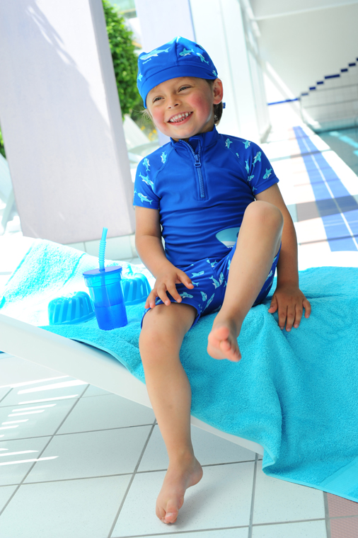 Ein hoher UV-Schutz ist wichtig, vor allem bei kleinen Wasserratten. Sonnenschutzmittel wie Cremes, Lotion oder Sprays sind nur wirksam, wenn die richtige Menge, zur rechten Zeit, und regelmässig aufgetragen wird.