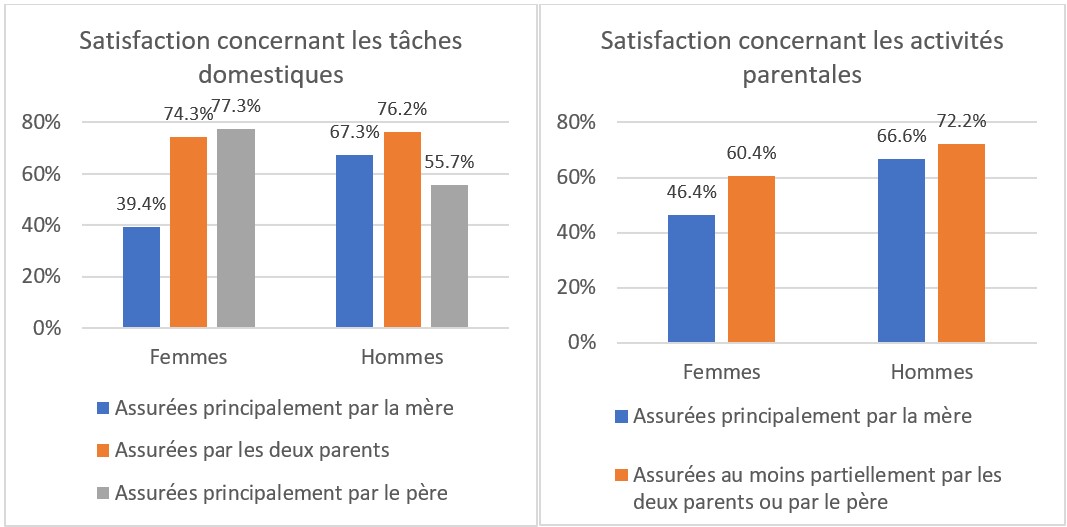 Personnes très satisfaites du partage des tâches domestiques et parentales, en fonction de qui s’en occupe principalement.